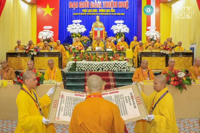 Cung an chức sự Hội đồng Thập sư Tăng, Ban Kiến đàn cung thỉnh Trưởng lão Hòa thượng Thích Thiện Nhơn, đương vi Đường đầu Hòa thượng đàn giới Tỳ-kheo; Trưởng lão Hòa thượng Thích Thiện Pháp đương vi Hòa thượng Đường đầu của đàn giới Sa-di; Trưởng lão Hòa thượng Thích Minh Thông, đương vi Yết-ma A-xà-lê; Hòa thượng Thích Lệ Trang đương vi Giáo thọ A-xà-lê.