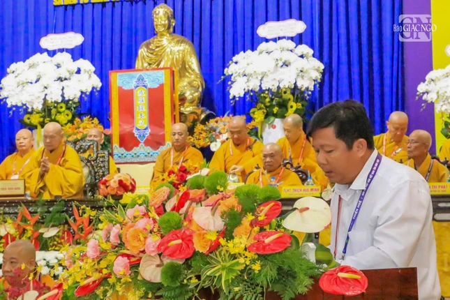 Sau lời phát biểu khai mạc của Thượng tọa Chánh Chủ đàn Thích Tĩnh Triệt, Thượng toạ Thích Minh Sơn, Chánh Thư ký Ban Trị sự GHPGVN tỉnh Đồng Tháp đã báo cáo công tác tổ chức Đại giới đàn Thiện Huệ Phật lịch 2569.