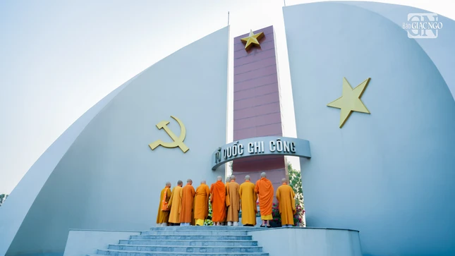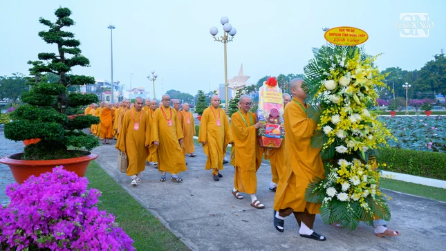 Tại Nghĩa trang Liệt sĩ tỉnh Đồng Tháp (P.Mỹ Trà) - nơi an nghỉ của hơn 3.000 liệt sĩ, chư tôn đức đã dâng hoa, dâng hương tưởng niệm Chủ tịch Hồ Chí Minh và dành phút mặc niệm tri ân các anh hùng đã hy sinh vì sự nghiệp bảo vệ Tổ quốc. Sau nghi thức tưởng niệm chung, đoàn đã đến thắp hương tại từng phần mộ liệt sĩ.