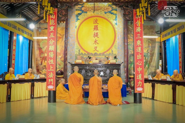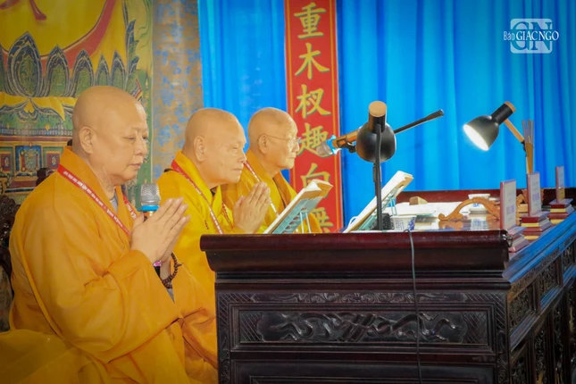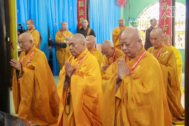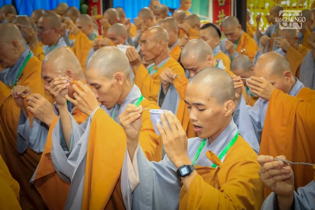 | Hội đồng Thập sư thực hiện nghi thức niêm hương bạch Phật, đảnh lễ Tam bảo |