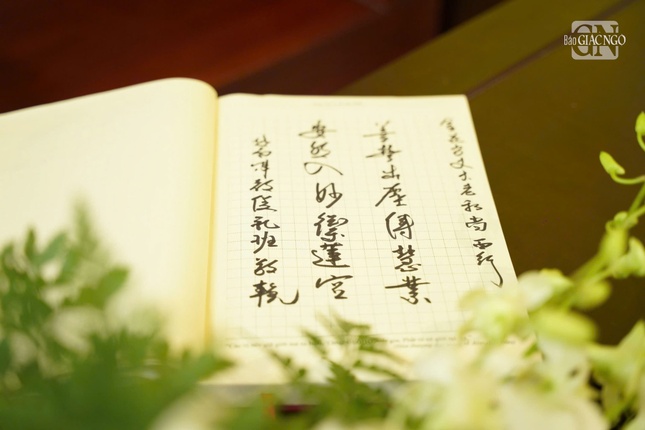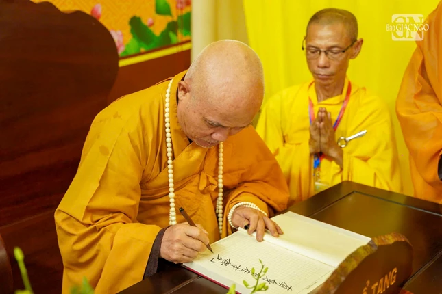 Trưởng lão Hòa thượng Thích Thiện Nhơn ghi sổ tang lưu niệm |