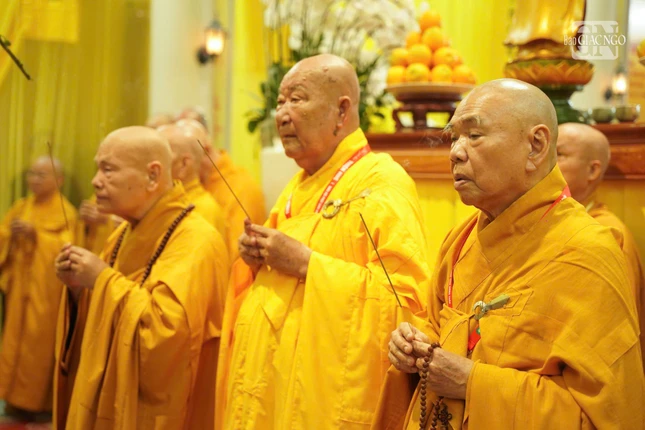 Tham dự còn có chư vị Phó Chủ tịch Hội đồng Trị sự: Hòa thượng Thích Huệ Thông, Hòa thượng Thích Lệ Trang; Thượng tọa Thích Giác Dũng, Thư ký Văn phòng Hội đồng Chứng minh; Thượng tọa Thích Phước Nguyên, Phó Tổng Thư ký Hội đồng Trị sự kiêm Chánh Văn phòng II T.Ư; cùng chư tôn đức Hội đồng Trị sự, Ban, Viện T.Ư, Văn phòng II T.Ư và các tỉnh thành tháp tùng.