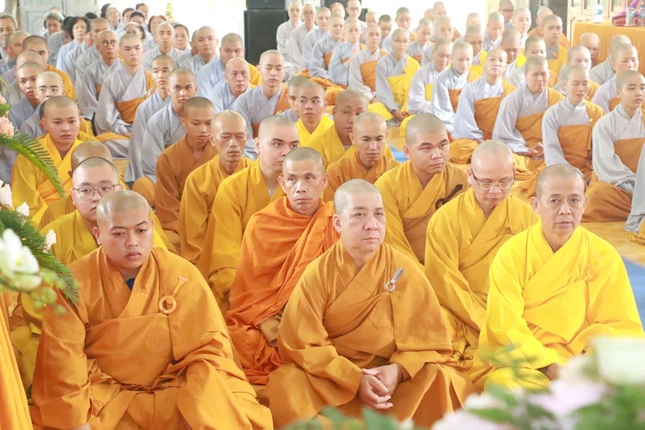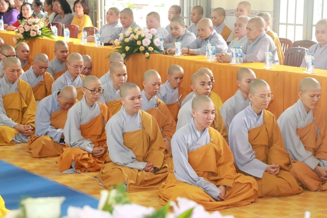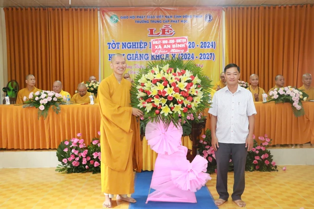 Quang lâm chứng minh buổi lễ có sự hiện diện của chư tôn Trưởng lão Thành viên Hội đồng Chứng minh, Chứng minh Ban Trị sự GHPGVN tỉnh Đồng Tháp: Hòa thượng Thích Nhật Quang, Hòa thượng Thích Phước Thông; Thượng tọa Thích Tĩnh Triệt, Ủy viên Hội đồng Trị sự, Phó Thường trực Ban Trị sự GHPGVN tỉnh Đồng Tháp; chư tôn đức Tăng Ni Ban Thường trực Ban Trị sự GHPGVN tỉnh, Ban Giám hiệu, Ban Giảng huấn; quý vị Phật tử trong Ban Bảo trợ nhà trường; 100 Tăng Ni sinh khóa IX và khóa X; đại diện lãnh đạo chính quyền, ban ngành, đoàn thể tỉnh Đồng Tháp, H.Cao Lãnh,... đồng tham dự.