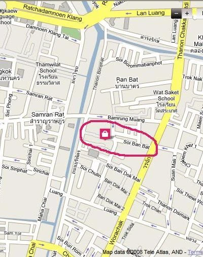 Để tìm thấy ngôi làng, bạn hãy đi dọc theo phía Bắc của Th Boriphat và theo sự chỉ dẫn để ghé vào ngõ nhỏ Soi Ban Baat. Đây là ngôi làng duy nhất do quốc vương Rama đệ nhất sáng lập còn tồn tại đến ngày nay cùng với truyền thống làm bình bát đã có hàng trăm năm tuổi.