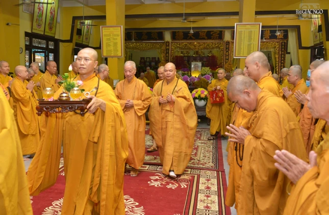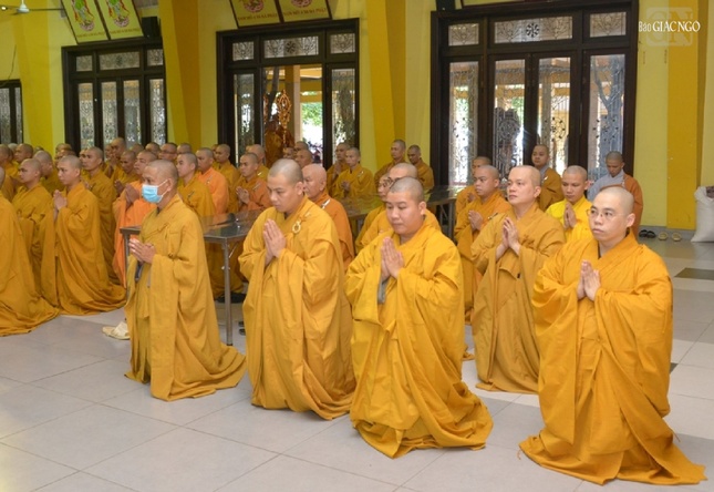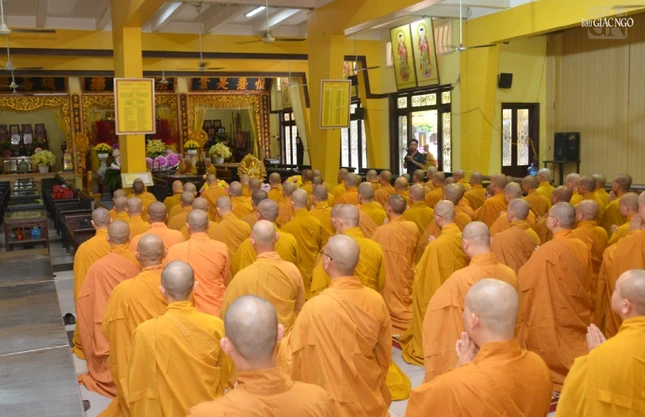Đại diện hành giả an cư tại tổ đình Vĩnh Nghiêm, Thượng tọa Thích Giác Dũng, Phó Viện trưởng Học viện Phật giáo VN tại TP.HCM, trụ trì tu viện Vĩnh Nghiêm (Q.12) tác bạch cho biết năm nay tại trường hạ có 158 hành giả an cư.