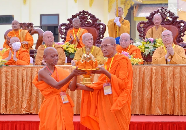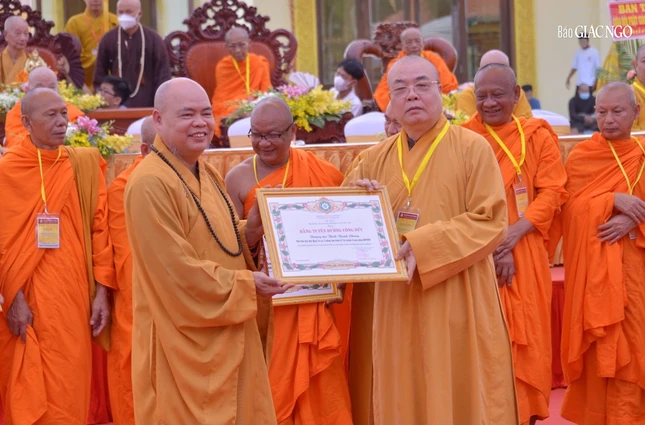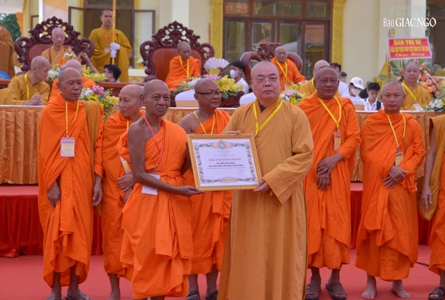 Dịp này, Ban Thường trực Hội đồng Trị sự GHPGVN cũng đã trao tặng Bằng tuyên dương công đức cho 3 tập thể và 17 cá nhân đã có nhiều đóng góp trong các Phật sự Học viện Phật giáo Nam tông Khmer tại TP.Cần Thơ.