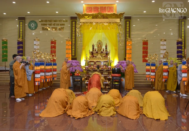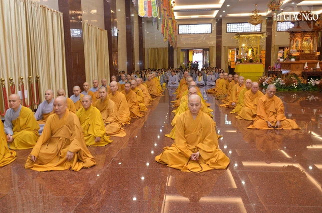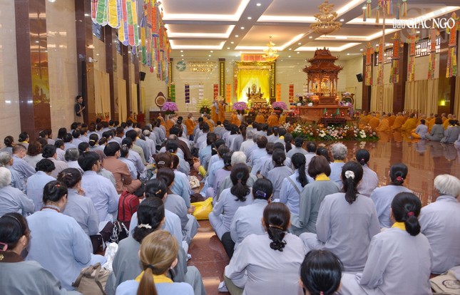 Cung đón Đức Pháp chủ quang lâm Pháp hội có chư tôn đức Ban Cố vấn, Ban Thường trực Ban Trị sự Phật giáo TP.HCM, Tăng Ni các tự viện cùng đông đảo Phật tử vân tập.