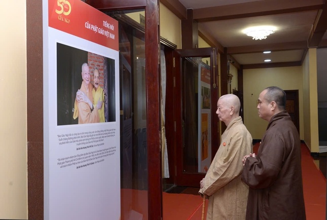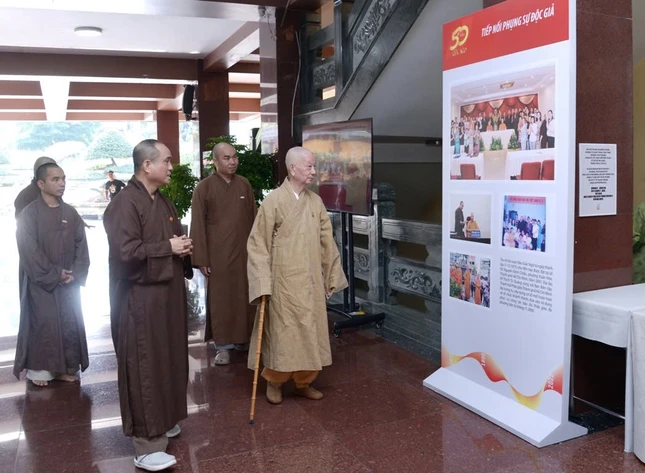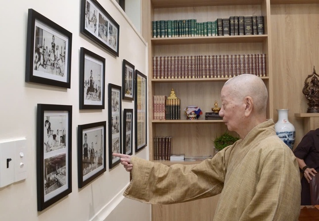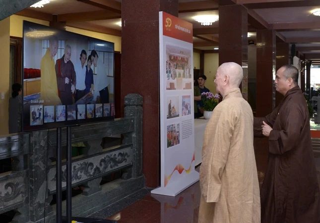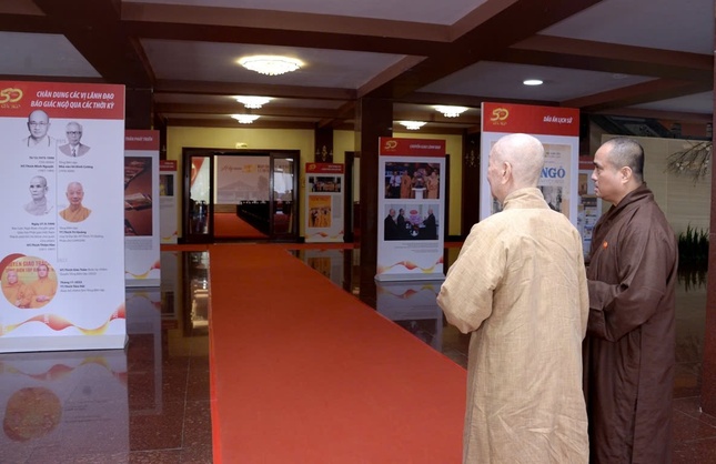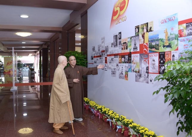 Dịp này, ngài cũng đã đến Việt Nam Quốc Tự xem triển lãm tư liệu về hành trình 50 năm Báo Giác Ngộ.