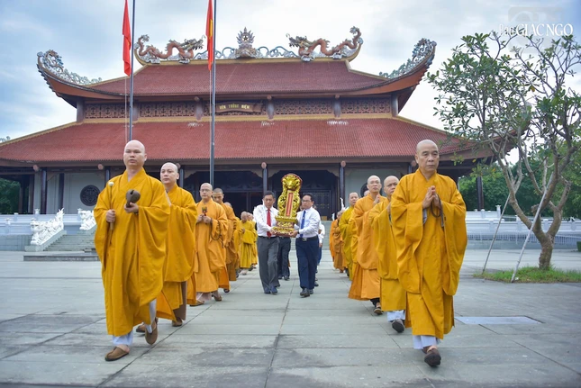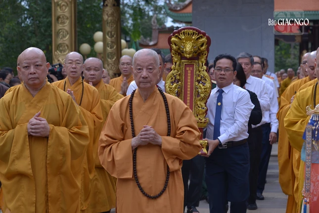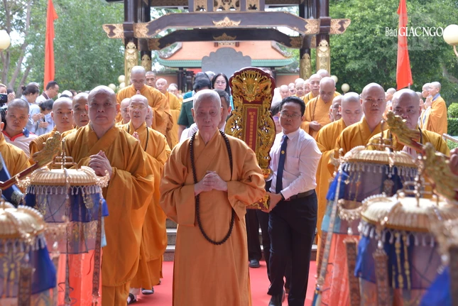 Đức Pháp chủ cùng chư tôn đức đón linh vị các anh hùng, liệt sĩ rước về từ Đền Gia Định