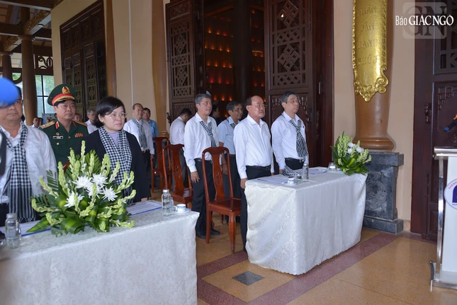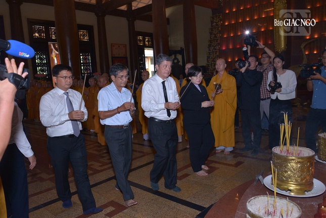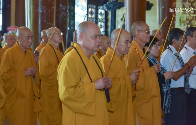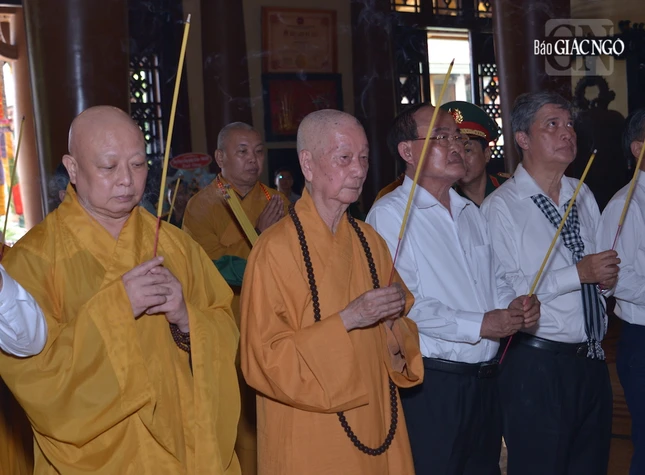 Quang lâm tham dự Lễ tưởng niệm có Đức Pháp chủ GHPGVN - Đại lão Hòa thượng Thích Trí Quảng, chư vị giáo phẩm Hội đồng Chứng minh, Cố vấn Ban Trị sự; cùng chư tôn đức Ban Trị sự GHPGVN TP.HCM: Hòa thượng Thích Lệ Trang, Trưởng ban Nghi lễ T.Ư, Trưởng ban Trị sự, đồng Trưởng ban Tổ chức; Thượng tọa Thích Thanh Phong, Phó Chủ tịch Hội đồng Trị sự, Phó ban Trị sự, Trưởng ban Từ thiện xã hội; Thượng tọa Thích Thiện Quý, Phó ban kiêm Chánh Thư ký; chư vị Phó Trưởng ban, Trưởng các ban chuyên ngành; Thượng tọa Thích Trung Nguyện, Phó Thư ký kiêm Chánh Văn phòng, cùng chư tôn đức Thường trực Ban Trị sự TP.HCM; Thượng tọa Thích An Thường, Trưởng ban và chư tôn đức Ban Trị sự Phật giáo H.Củ Chi, Tăng Ni tại địa phương, Phật tử vân tập tham dự.
