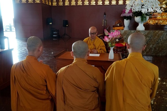 Đồng thời, Đức Pháp chủ chỉ dạy thêm, các Tăng, Ni ngoài thời khóa hành trì, cần phải nỗ lực tham thiền quán chiếu nội tâm để làm cho chơn tâm bừng sáng, Phật tánh hiển lộ, xứng đáng là người đáng lãnh thọ sự cung kính và cúng dường của đàn na tín thí, là ruộng phước tốt để mọi người gieo trồng.
