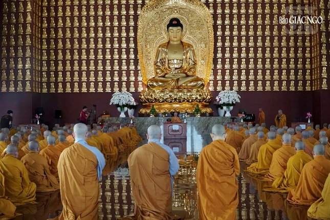 Chư Tăng lắng nghe lời giáo giới từ Đức Pháp chủ GHPGVN |