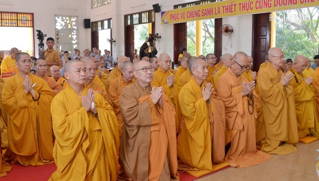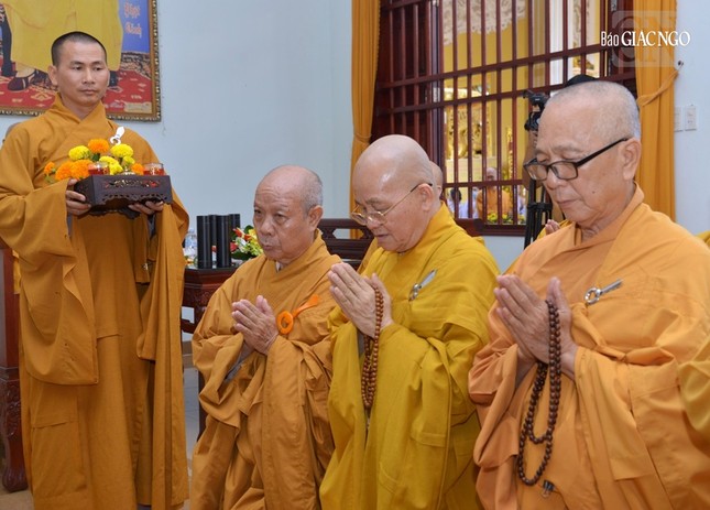 Cùng đi có Hòa thượng Thích Thiện Nhơn, Chủ tịch Hội đồng Trị sự kiêm Trưởng ban Tăng sự Trung ương; Hòa thượng Thích Thiện Pháp, Phó Chủ tịch Thường trực Hội đồng Trị sự kiêm Trưởng ban Kiểm soát Trung ương…