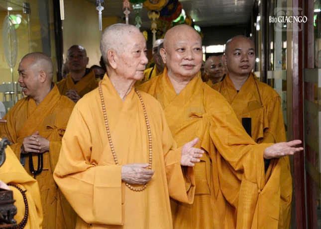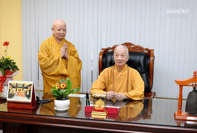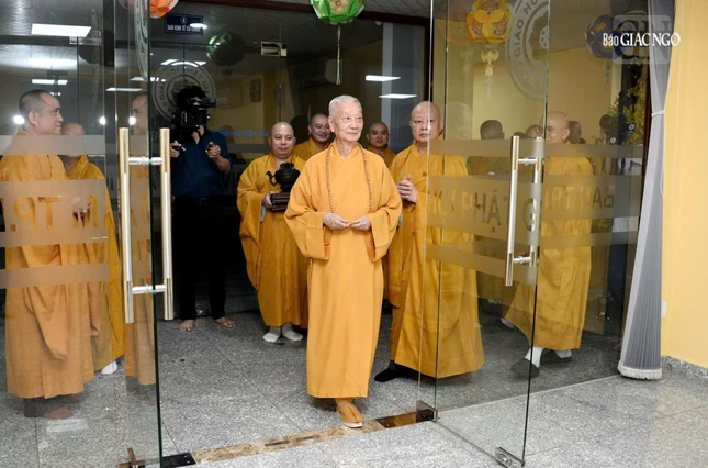 Dịp này, Đức Pháp chủ mở cửa Văn phòng Hội đồng Chứng minh đặt tại Việt Nam Quốc Tự; cùng chư tôn đức Ban Trị sự GHPGVN TP.HCM thực hiện nghi thức mở cửa, thăm Văn phòng Ban Trị sự TP.HCM, khối văn phòng hành chánh của các ban chuyên môn.