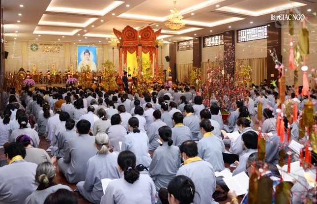 Tân xuân Ất Tỵ, chư tôn đức Ban Trị sự GHPGVN TP.HCM, các ban chuyên môn, Ban Trị sự TP.Thủ Đức, 21 quận huyện tổ chức họp mặt, khánh tuế Đức Pháp chủ GHPGVN - Đại lão Hòa thượng Thích Trí Quảng theo truyền thống thiền môn.