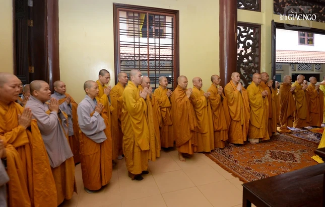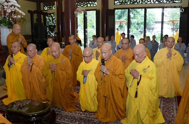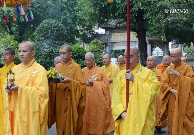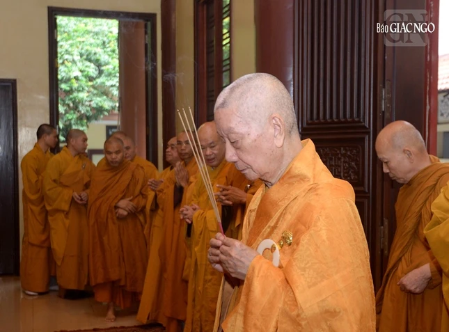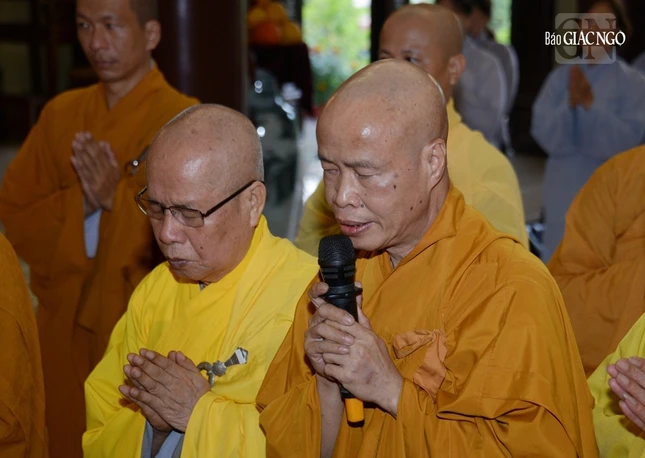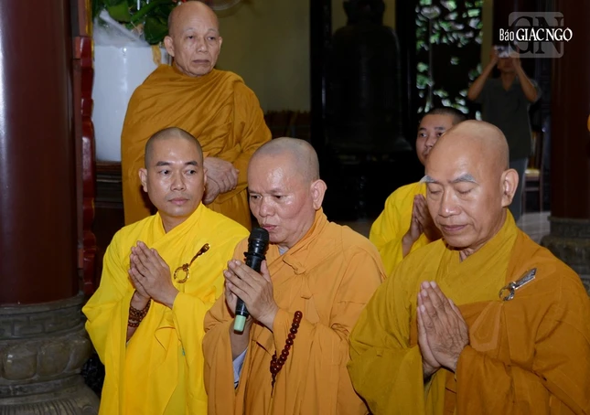 Tháp tùng có chư vị giáo phẩm Hội đồng Điều hành, Hội đồng Quản trị Viện Nghiên cứu Phật học VN; lãnh đạo các khoa thuộc Học viện Phật giáo VN tại TP.HCM.