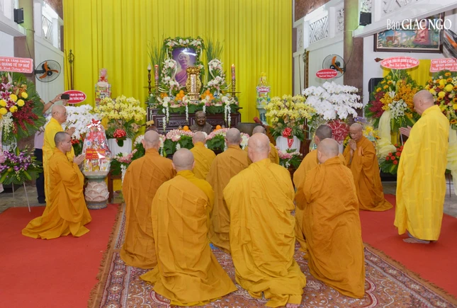 Đối trước hương án Trưởng lão Hòa thượng Thích Minh Châu, Phó Pháp chủ Hội đồng Chứng minh, Viện trưởng sáng lập Viện Nghiên cứu Phật học VN, Viện trưởng sáng lập Học viện Phật giáo VN tại TP.HCM, Đức Pháp chủ đã dâng hương tưởng niệm công đức bậc thầy của nhiều thế hệ Tăng Ni, Phật tử, người đã dành trọn cuộc đời và tâm huyết cống hiến cho sự nghiệp giáo dục Phật giáo; vị giáo phẩm đã góp công đặt nền móng xây dựng và song hành cùng sự phát triển của GHPGVN ngay từ những ngày đầu thành lập.