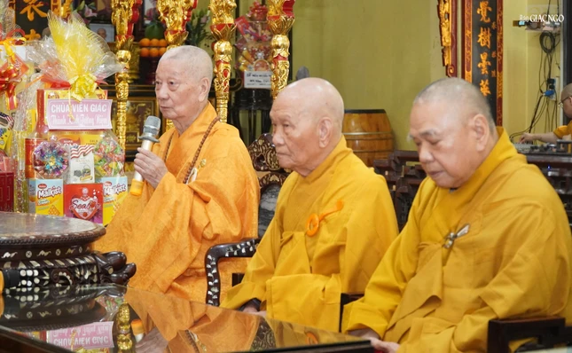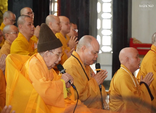 Đức Pháp chủ GHPGVN - Đại lão Hòa thượng Thích Trí Quảng; Trưởng lão Hòa thượng Thích Đức Nghiệp, Phó Pháp chủ kiêm Giám luật Hội đồng Chứng minh, Trưởng môn phái tổ đình Vĩnh Nghiêm; Trưởng lão Hòa thượng Thích Thiện Nhơn, Phó Pháp chủ, Chủ tịch Hội đồng Trị sự; chư tôn Trưởng lão Ủy viên Thường trực Hội đồng Chứng minh, quang lâm chứng minh.