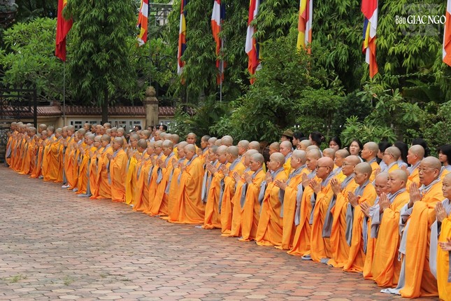 Cung nghinh Đức Pháp chủ và chư vị Trưởng lão Hội đồng Chứng minh có Hòa thượng Thích Khế Chơn, Phó Chủ tịch Hội đồng Trị sự, Trưởng ban Trị sự GHPGVN tỉnh Thừa Thiên Huế; Hòa thượng Thích Hải Ấn, Ủy viên Thường trực Hội đồng Trị sự, Viện trưởng Học viện Phật giáo VN tại Huế; cùng chư tôn đức Ban Thường trực Ban Trị sự tỉnh, Hội đồng Điều hành Học viện và đông đảo chư Tăng Ni, Tăng Ni sinh viên, Phật tử các giới.