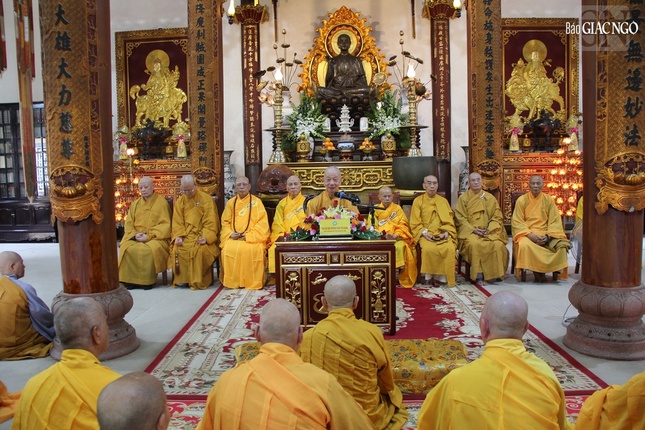 Dịp này, Đại lão Hòa thượng Pháp chủ nói về ý nghĩa và tầm quan trọng của phương châm “duy tuệ thị nghiệp” (lấy trí tuệ làm sự nghiệp) và trách nhiệm của người Phật tử, cả xuất gia và tại gia trong việc học và thực hành, truyền bá Phật pháp.