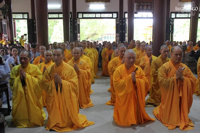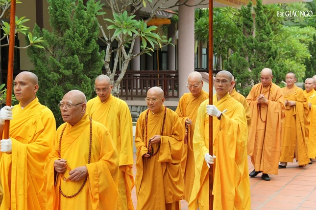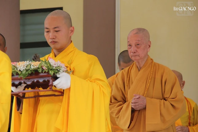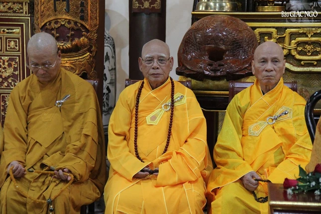 Tháp tùng Đức Pháp chủ có chư vị Ban Thư ký Văn phòng Đức Pháp chủ: Hòa thượng Thích Lệ Trang, Trưởng ban Trị sự GHPGVN TP.HCM; Thượng tọa Thích Giác Dũng, Phó Viện trưởng Học viện Phật giáo VN tại TP.HCM; Thượng tọa Thích Tâm Hải, Tổng Biên tập Báo Giác Ngộ.