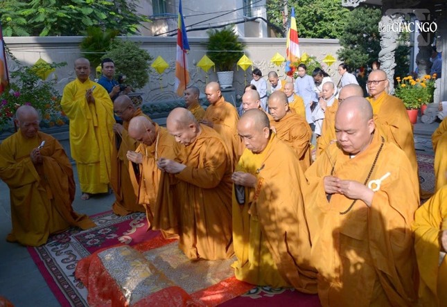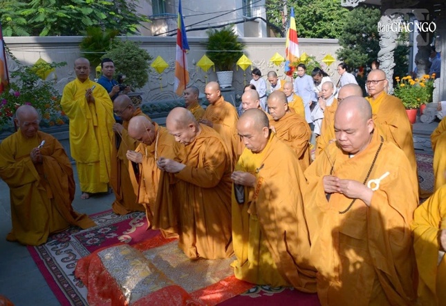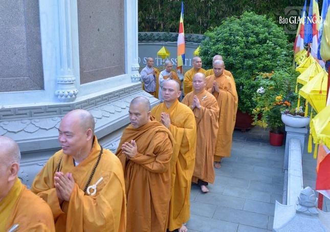 Tháp tùng Đức Pháp chủ có chư tôn đức lãnh đạo Hội đồng Điều hành Học viện Phật giáo VN tại TP.HCM, Hội đồng Quản trị Viện Nghiên cứu Phật học VN.