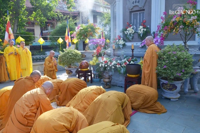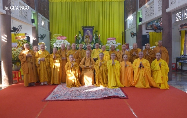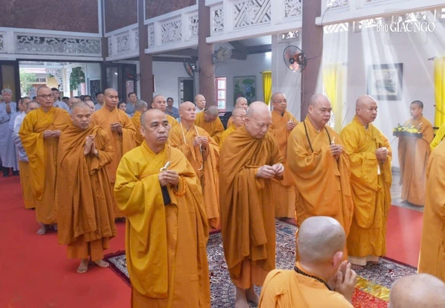 Trưởng lão Hòa thượng Thích Thiện Nhơn cùng chư tôn đức tưởng niệm Trưởng lão Hòa thượng Thích Minh Châu - Ảnh: Đăng Huy |