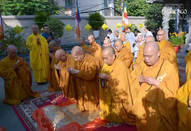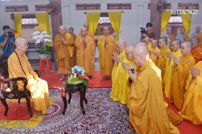 Trước đó, tại cơ sở 1 Học viện Phật giáo VN tại TP.HCM - thiền viện Vạn Hạnh, chư tôn đức Hội đồng Điều hành Học viện cũng đã đảnh lễ khánh tuế hạ lạp Đức Pháp chủ GHPGVN, Viện trưởng Học viện.