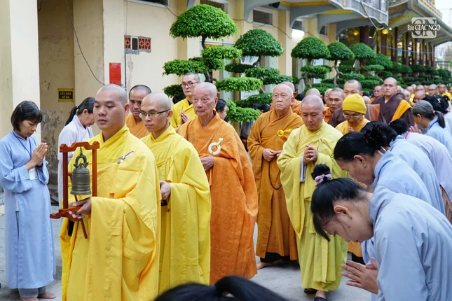 Tháp tùng Đức Pháp chủ có chư vị Trưởng lão Hội đồng Chứng minh: Trưởng lão Hòa thượng Viên Minh, Phó Pháp chủ; Trưởng lão Hòa thượng Thích Như Niệm, Phó Thư ký; chư vị Ủy viên Thường trực: Trưởng lão Hòa thượng Giác Tường, Trưởng lão Hòa thượng Thích Như Tín, Hòa thượng Thích Minh Thông; cùng vị Trưởng lão Thành viên Hội đồng Chứng minh GHPGVN.