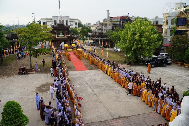 | Quang cảnh buổi cung nghinh chư tôn Trưởng lão Hội đồng Chứng minh, quý giáo phẩm Hội đồng Trị sự tại chùa Thánh Long, tỉnh Thái Bình ngày 12-8-2023 |