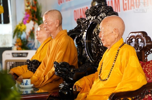 Cùng đi với Đức Pháp chủ có Hoà thượng Thích Thanh Nhiễu, Phó Chủ tịch Thường trực Hội đồng Trị sự; Hoà thượng Thích Bảo Nghiêm, Phó Chủ tịch Hội đồng Trị sự, Trưởng ban Hoằng pháp T.Ư, Trưởng ban Trị sự GHPGVN TP.Hà Nội; Hoà thượng Thích Lệ Trang, Trưởng ban Nghi lễ T.Ư, Trưởng ban Trị sự GHPGVN TP.HCM; Thượng tọa Thích Thanh Phong, Phó Chủ tịch Hội đồng Trị sự, Trưởng ban Kinh tế - Tài chính T.Ư, cùng chư vị giáo phẩm Ban Hoằng pháp T.Ư, Ban Kinh tế - Tài chính T.Ư, Ban Thư ký Văn phòng Đức Pháp chủ.