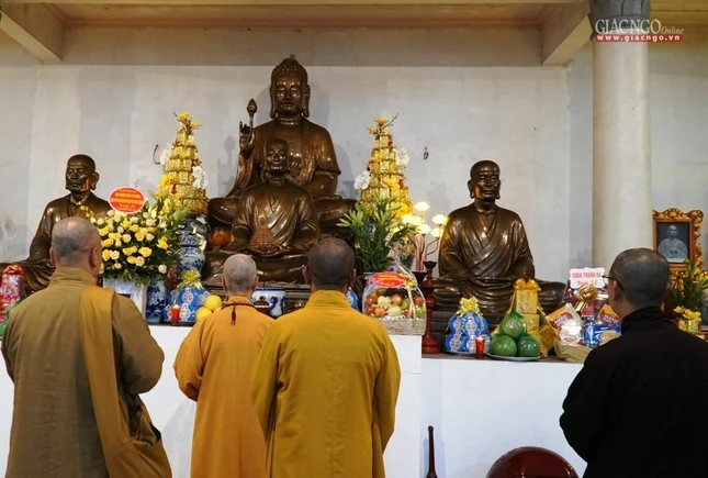Trưởng lão Hòa thượng dâng hương tại Tổ đường |