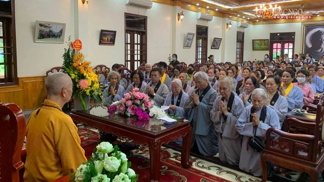 Trưởng lão Hòa thượng phó chúc Hòa thượng Thích Quảng Hà hướng dẫn cho Phật tử Đạo tràng Pháp Hoa tại Nam Định |