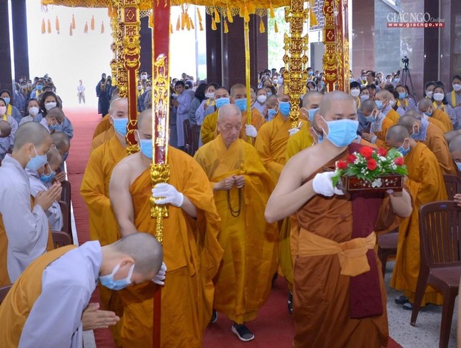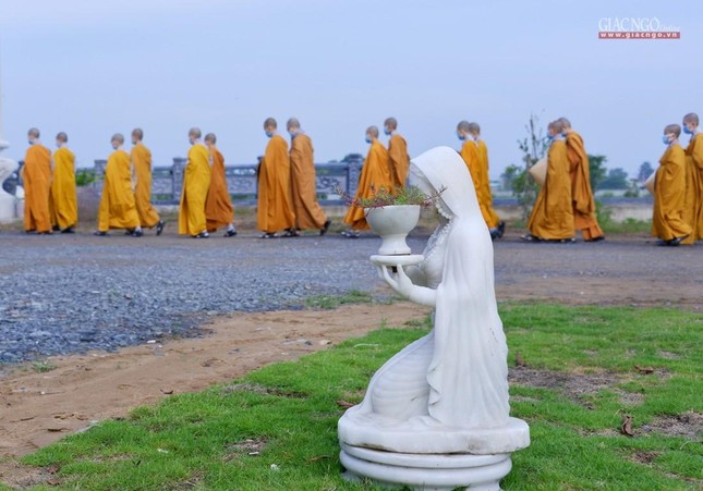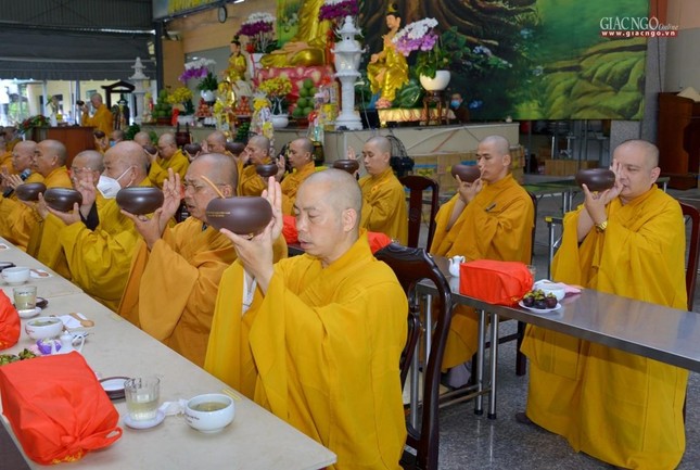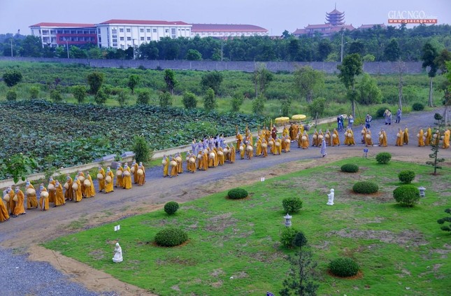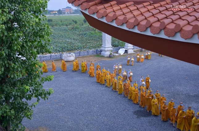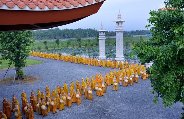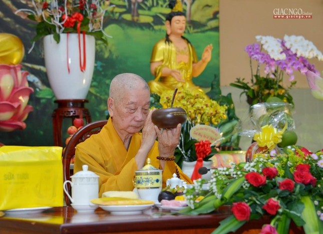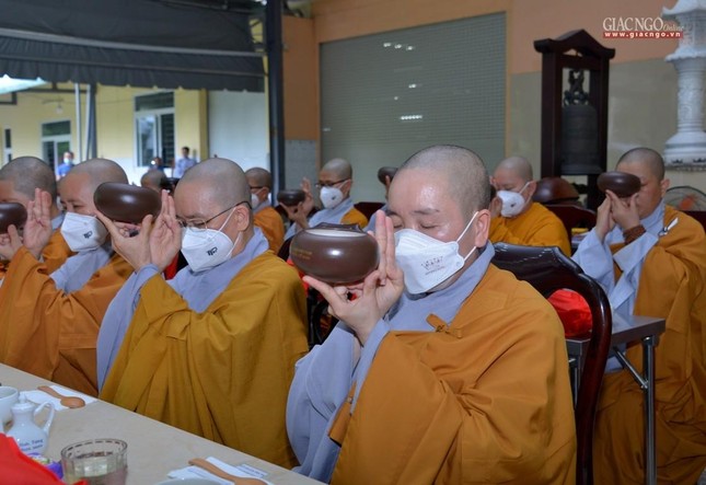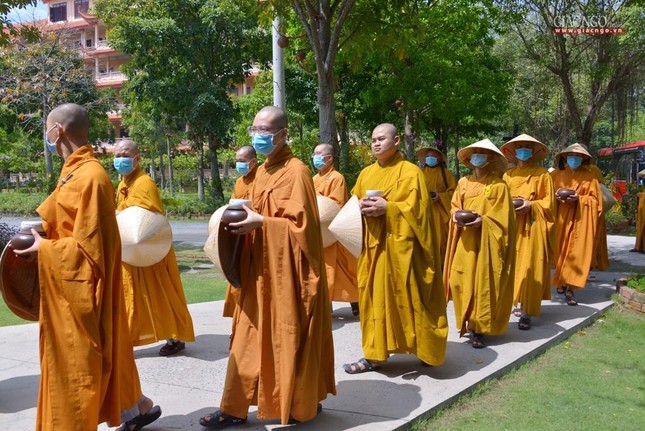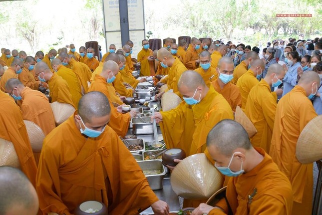 Trưa cùng ngày, Đức Quyền Pháp chủ và chư Tăng, Tăng Ni sinh viên đã cùng quá đường theo nghi thức thiền môn.