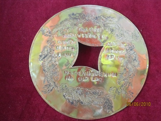 Những miếng đồng khắc hình con rồng thời Lý và tên các tín chủ phát tâm góp phần công đức