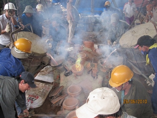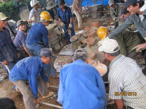Các nghệ nhân đang khẩn trương nấu và rót đồng vào khuôn