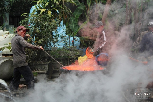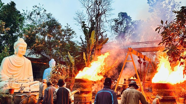 Trong không khí trang nghiêm, Trưởng lão Hòa thượng Phó Pháp chủ cùng chư tôn giáo phẩm đã niêm hương cầu nguyện. Hòa thượng Thích Giác Đạo, Ủy viên Hội đồng Trị sự, Phó Trưởng ban Thường trực Ban Nghi lễ T.Ư dẫn lễ cử hành nghi thức rót đồng kiến tạo đại hồng chung. Toàn thể đại chúng nhất tâm đồng niệm hồng danh chư Phật, chư Bồ-tát gia bị trong khi hơn 60 nghệ nhân, nhân viên kỹ thuật rót đồng vào khuôn theo quy trình bảo đảm sự thành tựu viên mãn.