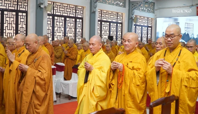 Trước Giác linh đài khói trầm quyện tỏa, Hòa thượng Thích Lệ Trang cung tuyên pháp ngữ, chư tôn giáo phẩm Hội đồng Chứng minh, Hội đồng Trị sự GHPGVN, các Ban, Viện T.Ư, Văn phòng II TƯGH, Ban Trị sự GHPGVN TP.HCM và các tỉnh thành; cùng chư tôn đức môn đồ pháp quyến đã thành kính đảnh lễ Giác linh Đại lão Hòa thượng Thích Trí Thủ, thành kính tưởng niệm, tri ân công đức to lớn của ngài cho Đạo pháp và Dân tộc, cùng chư vị tiền bối hữu công GHPGVN đã viên tịch qua các thời kỳ.