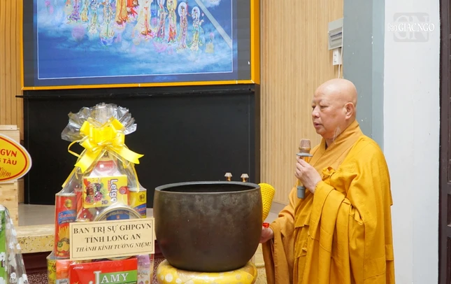 Thay mặt Ban Tổ chức, Thượng tọa Thích Phước Nguyên đã đọc lời cảm tạ, tri ân chư tôn giáo phẩm quang lâm đến thắp hương tưởng niệm 40 năm ngày Đại lão Hòa thượng Thích Trí Thủ - Đệ nhất Chủ tịch Hội đồng Trị sự viên tịch, cùng tưởng niệm chư vị tiền bối hữu công GHPGVN viên tịch qua các thời kỳ.