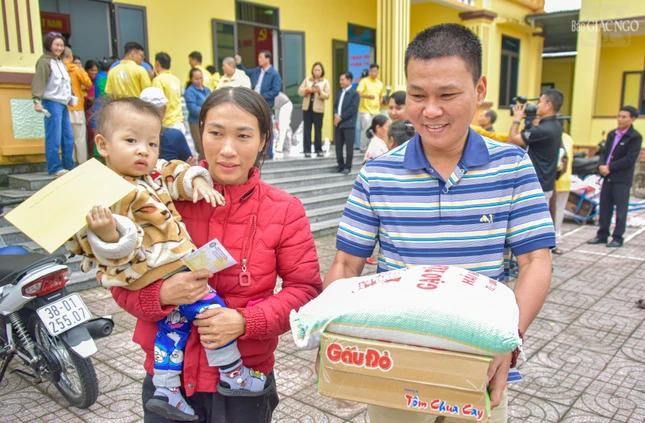 Mỗi phần quà trị giá 1,3 triệu đồng, bao gồm: bì thư tiền mặt (1 triệu), gạo, mì. Tổng giá trị của đợt tặng quà lần này tại Hà Tĩnh và Quảng Trị là 2,6 tỷ đồng.