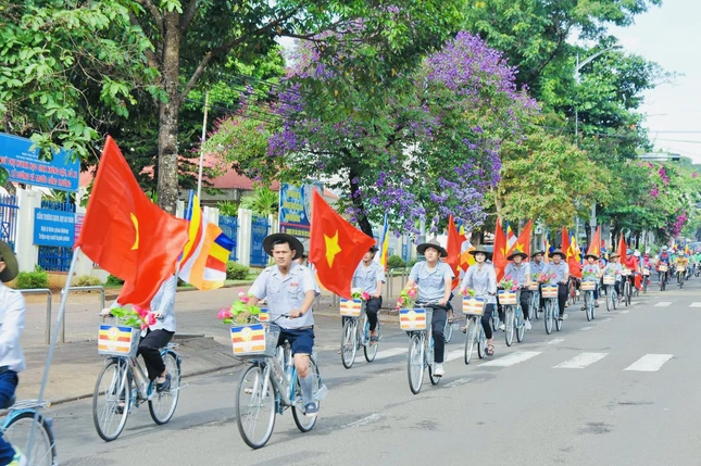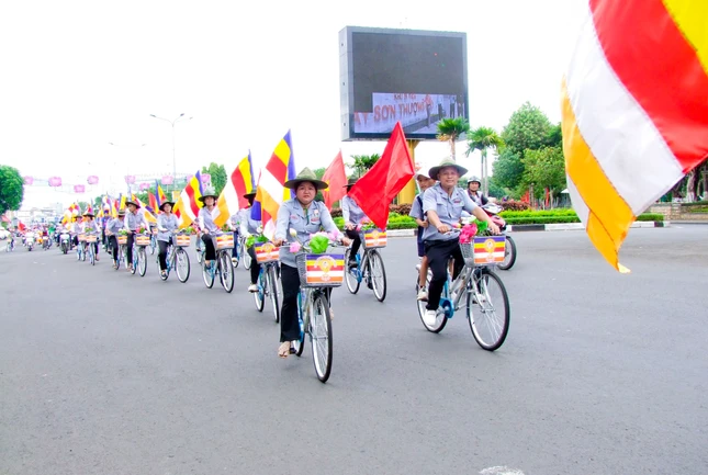GNO - Cùng lan tỏa niềm vui chung của những người con Phật hướng đến kỷ niệm ngày Đức Từ Phụ Thích Ca Mâu Ni đản sanh, sáng 11-4-Giáp Thìn (18-5), Ban Hướng dẫn Phật tử tỉnh Gia Lai tổ chức diễu hành xe đạp hoa kính mừng Phật đản Phật lịch 2568.