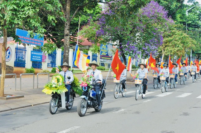Tham gia diễu hành có huynh trưởng và đoàn sinh Gia đình Phật tử, Liên đoàn xe đạp Gia Lai, Câu lạc bộ Honda67 Pleiku.