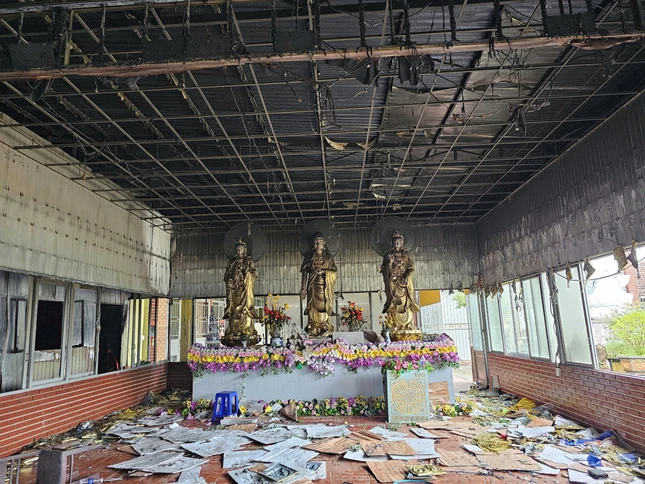 Do chùa đóng cửa nên lực lượng chức năng phải phá cửa vào để chữa cháy, đồng thời, ngăn đám cháy lây lan sang những căn nhà bên cạnh.