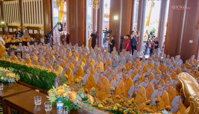 “Mặc dù được xuất gia, được làm sa-môn nhưng phải đạt Sa-môn quả mới là điều quan trọng. Cho nên, tất cả các giới tử hôm nay đã vượt qua những chặng đường khó khăn nhất và phần còn lại phải cố gắng thực hành giáo pháp của Đức Phật để chứng được Sa-môn quả. Trong Sa-môn quả, chúng ta không bị đời sống vật chất cám dỗ để chúng ta trở thành một Tỳ-kheo thanh tịnh. Và từ đó chúng ta mới bắt đầu bước vào đời sống tâm linh và nhận được sự hộ trì", Trưởng lão Hòa thượng khai thị cho giới tử.