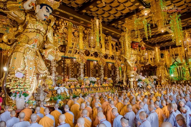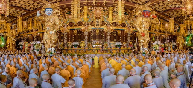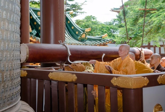 | Chư tôn giáo phẩm chứng minh lễ khai "Thiên Phật hộ quốc thần chung" 32 tấn tại chùa Minh Thành |