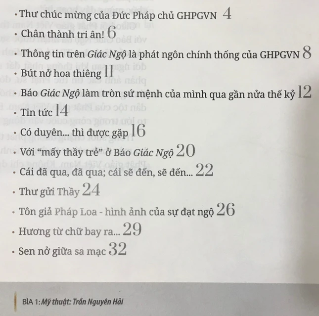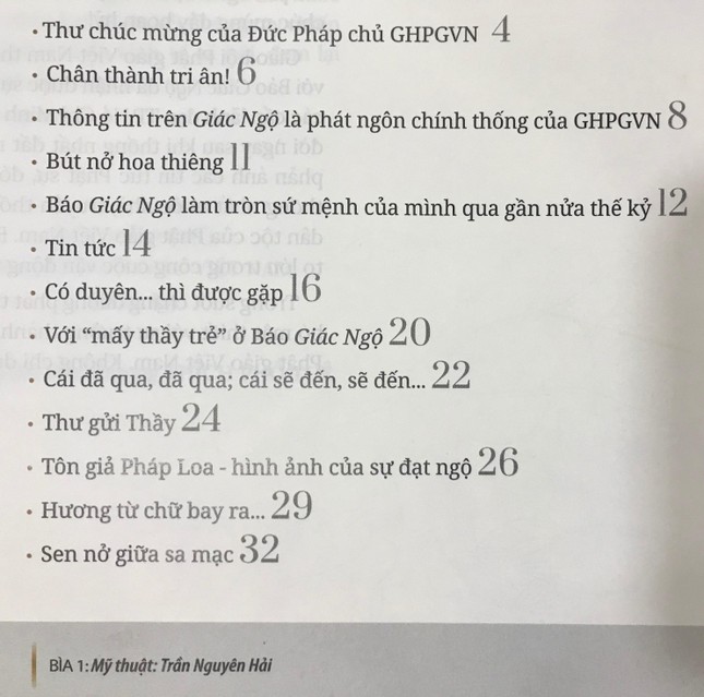 Nội dung của báo còn có Thư Tổng Biên tập: Chân thành tri ân! Theo đó, Trưởng lão HT.Thích Trí Quảng viết: "... thay vì dành để nói về những nhân duyên, khó khăn mà báo đã đối diện, vượt qua, tôi xin dành cho vấn đề lớn hơn, của thế giới và đất nước chúng ta".