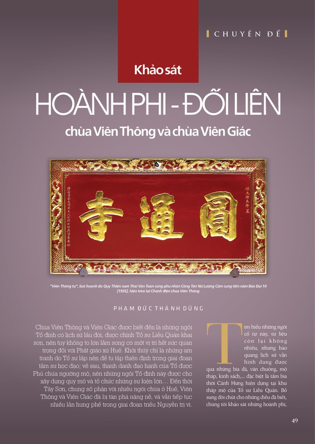 - Trần Văn Dũng: “Hoàng tộc Nguyễn với công đức hộ trì Tam bảo chùa Viên Thông”.