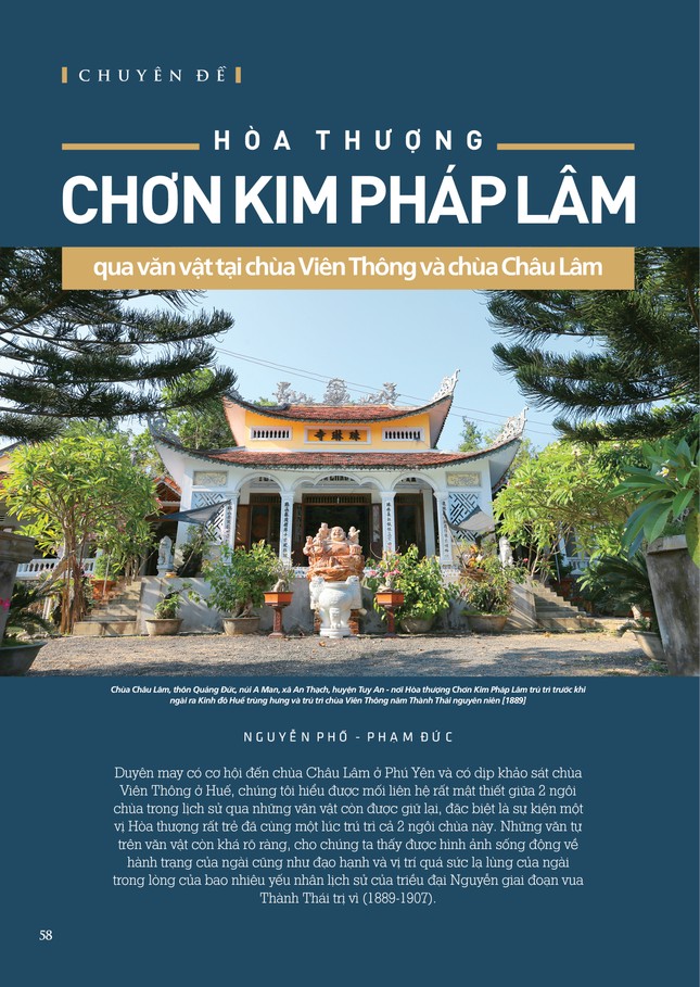 - Nguyễn Phố, Phạm Đức: “Hoà thượng Chơn Kim Pháp Lâm qua văn vật tại chùa Viên Thông và chùa Châu Lâm”.