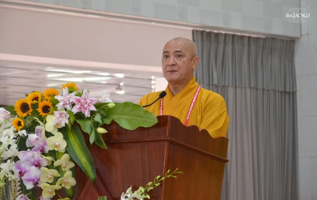 Hòa thượng Thích Thiện Thống đúc kết phiên thảo luận ngày đầu tiên - Ảnh: Đăng Huy