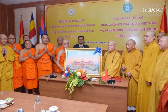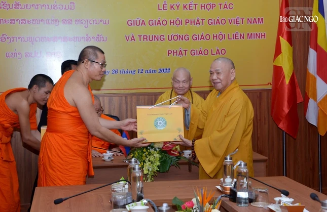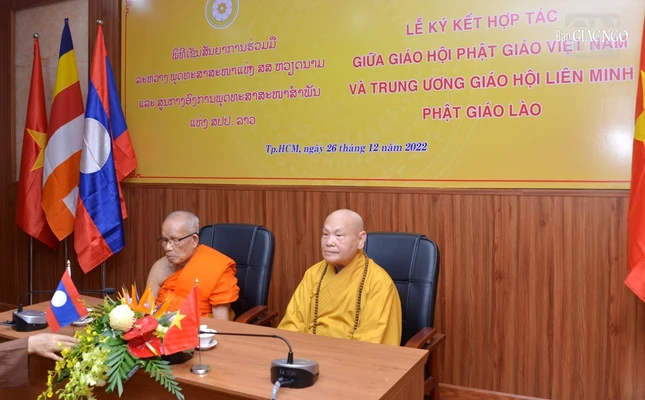 GNO - Chiều 26-12, tại Văn phòng II Trung ương (thiền viện Quảng Đức, quận 3, TP.HCM), lễ ký kết hợp tác giữa Giáo hội Phật giáo Việt Nam (GHPGVN) và Liên minh Phật giáo Lào được diễn ra trọng thể, trước sự chứng kiến của chư tôn đức lãnh đạo cấp cao.